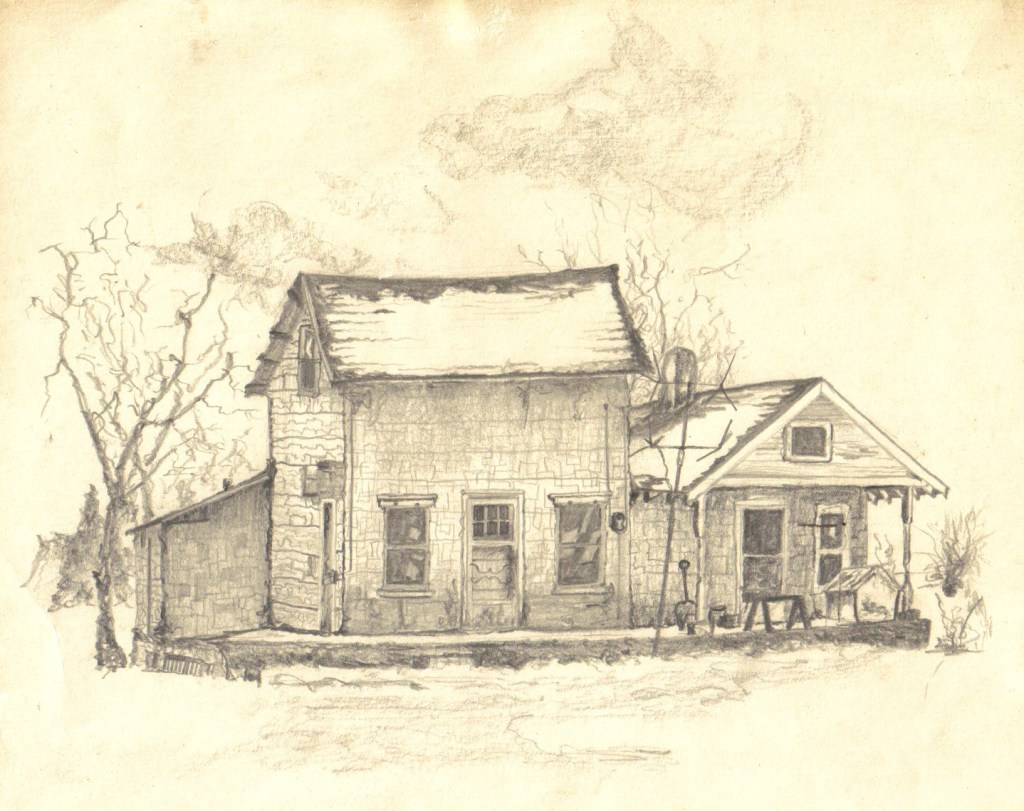 And by this time my recommitment had faded, my recommitment to my Christian faith. It was short-lived, but not my questions. They didn’t fade. Not my questions about life and death. Not my questions about God. My questions were just beginning to come. The picture, by one of my sisters, is an actual drawing of where I lived. As you can see it was quite primitive.